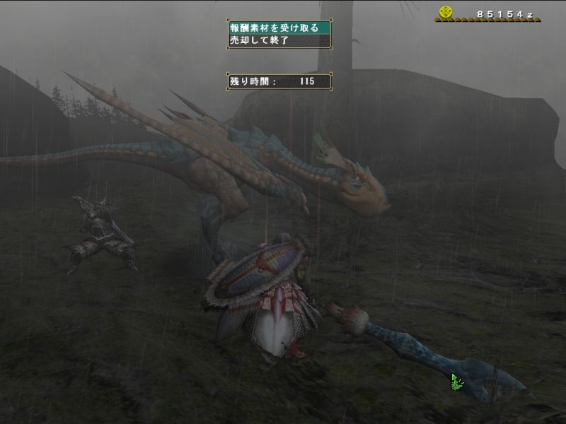 持ちこたえられなくて死んだ頃、ターゲットも死ぬというパターンがとても多いのでいつも剥ぎ取りに遅れそうなわたし。。。8番の高みから飛び降りたら尻尾とティガが別々だというのがわかって焦るあまりボタン操作がめちゃめちゃww 笑いものになったのは言うまでも無いw