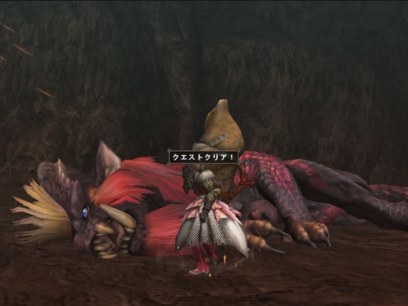 ラストは二人とも寝落ち寸前でゲリョスに行って(今日はちゃんとペイントボールもってったw)「ゴマ質の上皮」が出まくったらしい。おめ~。これであとは電撃袋があればフルミナントブレードできるね。