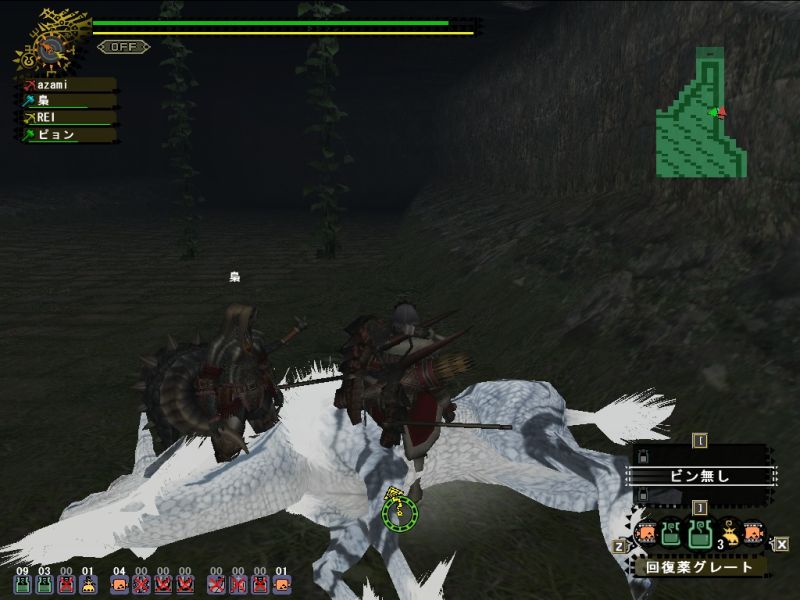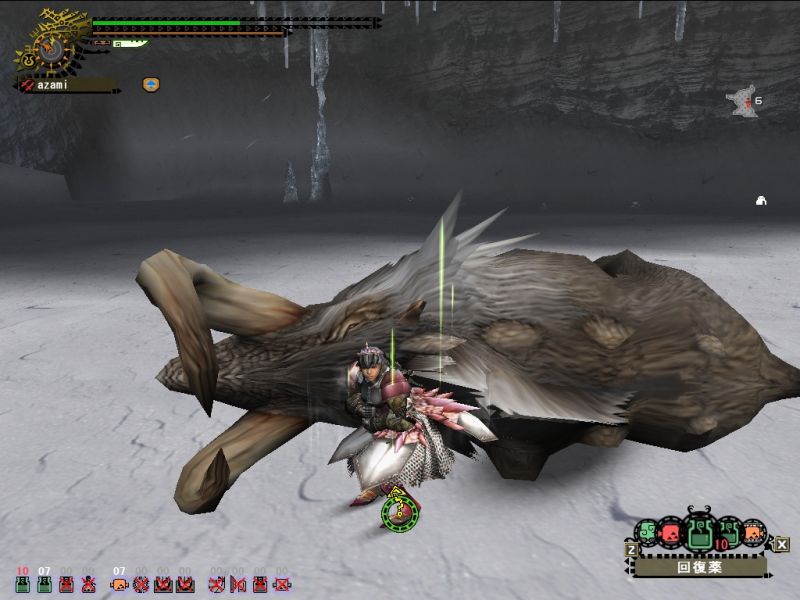 脈絡なくあちこち飛び回るので移動にばかり時間がとられてへたっちゃうので弓で行ってみる。角がねらいやすくなるが攻撃力がない。。。