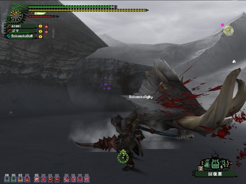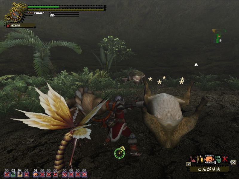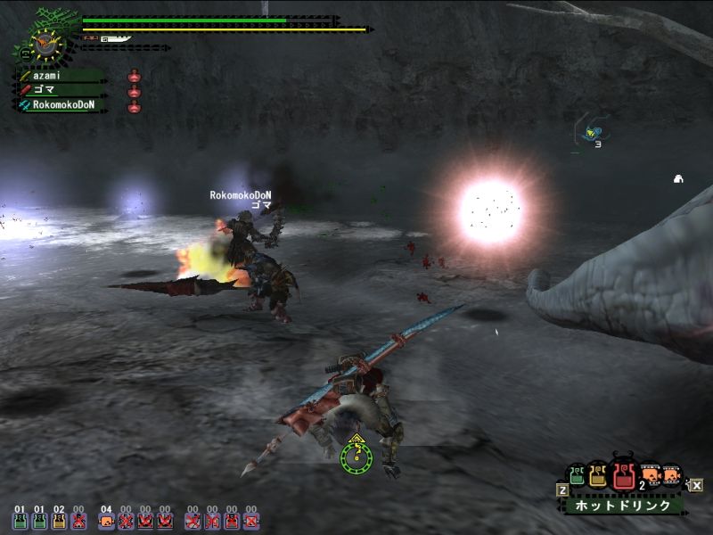 こんがり肉が足りなくてひどいめにあう。ヒーラーがクエやメンバーを危険にさらすなんてもってのほかだよね。。。エリア移動してすぐティガのラッシュを食らった時にスタミナ切れで動けない状態になった。