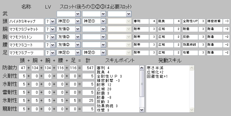 ランナーかはらヘリ無効でもつけよかな?その前に広域は+2にしたいし。作りかけの防具のスキルはじっくり考えよう。