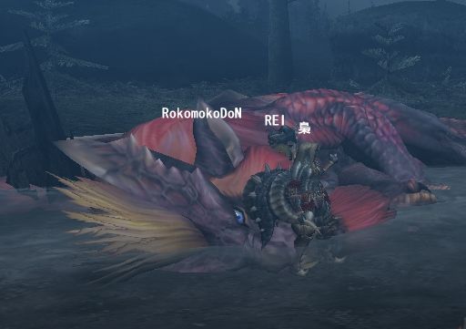 とおーくから丼さんの置いた罠をゆっくりとよけて90度方向を変え止まらずに長~い距離走って、笛を吹いていたわたしのところまで来たグラを初めて目撃。走っているうちにスタミナが切れたらしくダメージはたいしたことなかったw 「今のはなんなんだ~」笑いの止まらない団長と丼さん。