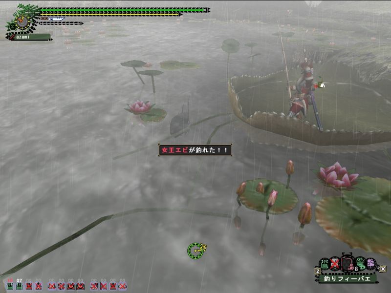 剥ぎ取りなのにうっかり捕獲道具と打上げ樽爆弾持っていってしまう。密林は雨で使えない。