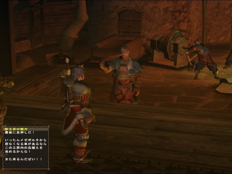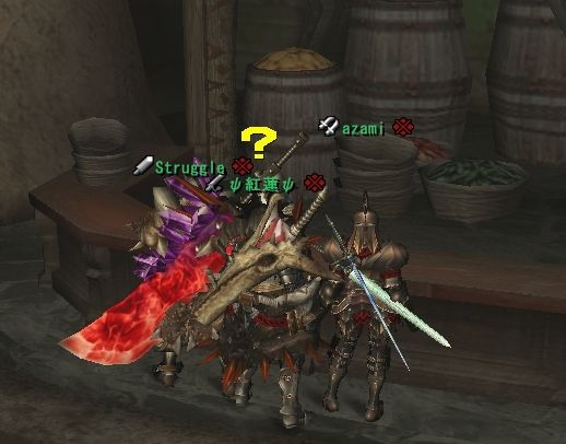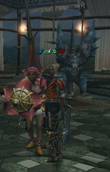 団の皆はアップデート前日ともなると、1週間かけて配信クエに行きつくして休日の状態をかもし出している。新しい装備を見直したり、そんな中でのヒトコマ。