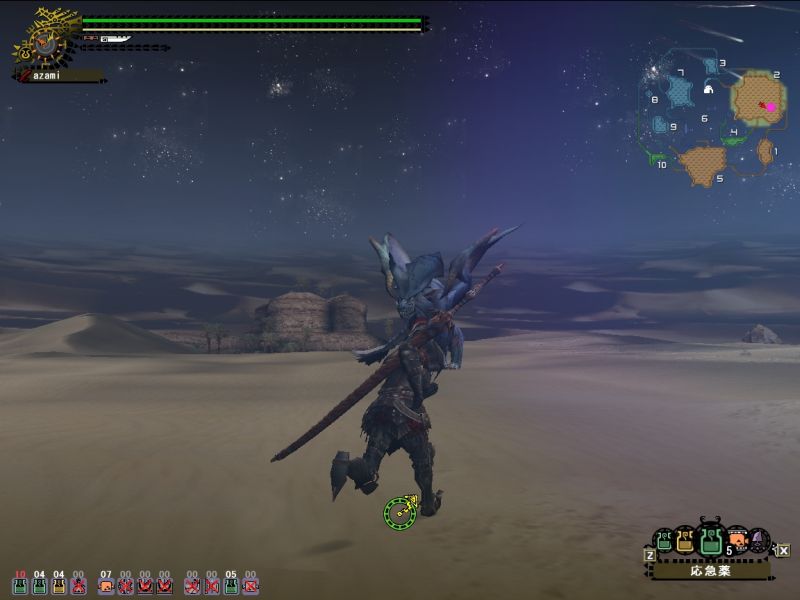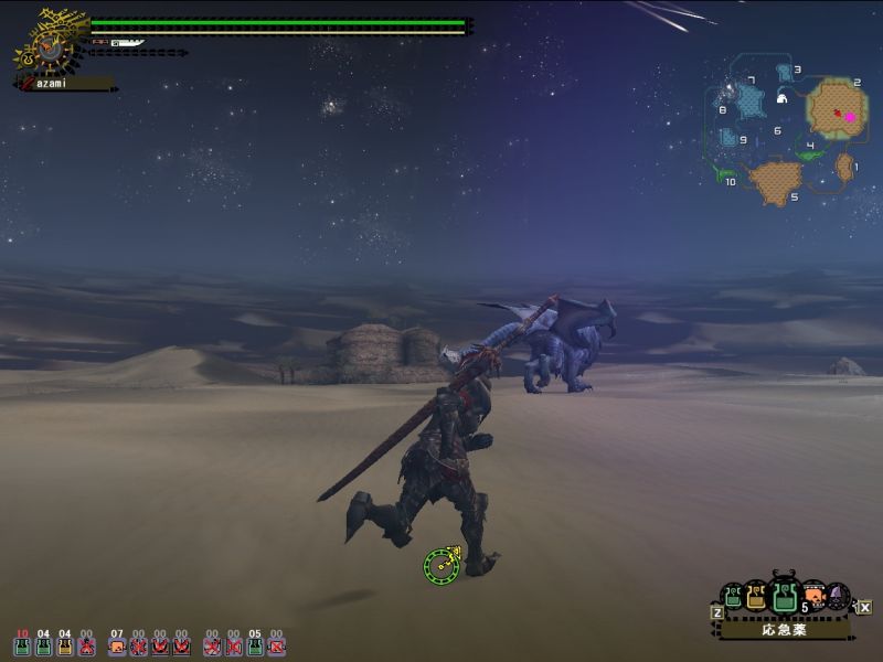 しかし・・・途中自分のへたさにあきれて、砂漠の撃退戦にも行ってみる。こちらは問題ない。ナナは4を経由して5と2を単純往復している。